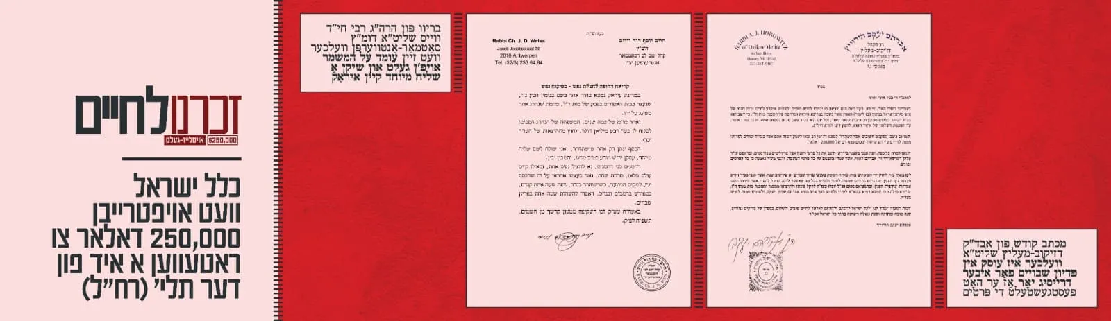 This is a mission supervised by some of our generation's most respected Gedolim. HaRav Chaim Dovid Weiss, the Satmar Dayan of Antwerp, and the Dzikov-Melitzer Rebbe have both issued letters of support. R' Elya Brudny has also given his haskama with a letter attached, lending his prestigious endorsement to this critical rescue mission. These are men who have devoted their lives to pidyon shvuyim, who understand the halachic and moral imperatives at stake.